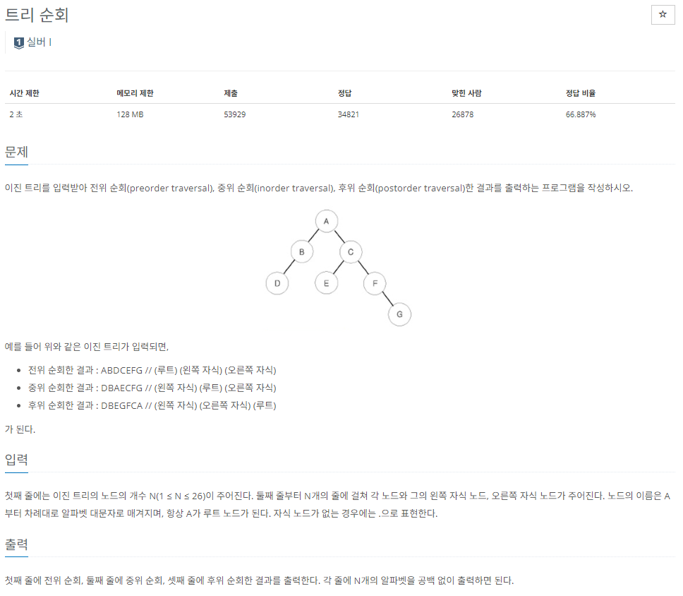 우선 전위 순회, 중위 순회, 후위 순회의 정확한 의미를 알아야 한다.