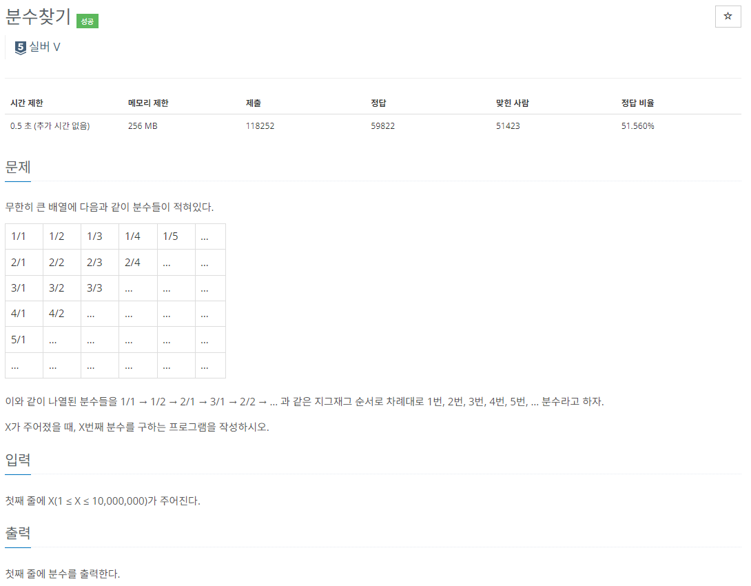 백준 1193 - 분수찾기