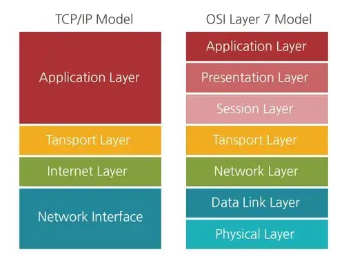 효율적인 데이터 전송을 위해 프로토콜을 설계한 것. (더 세분화되면 7계층)